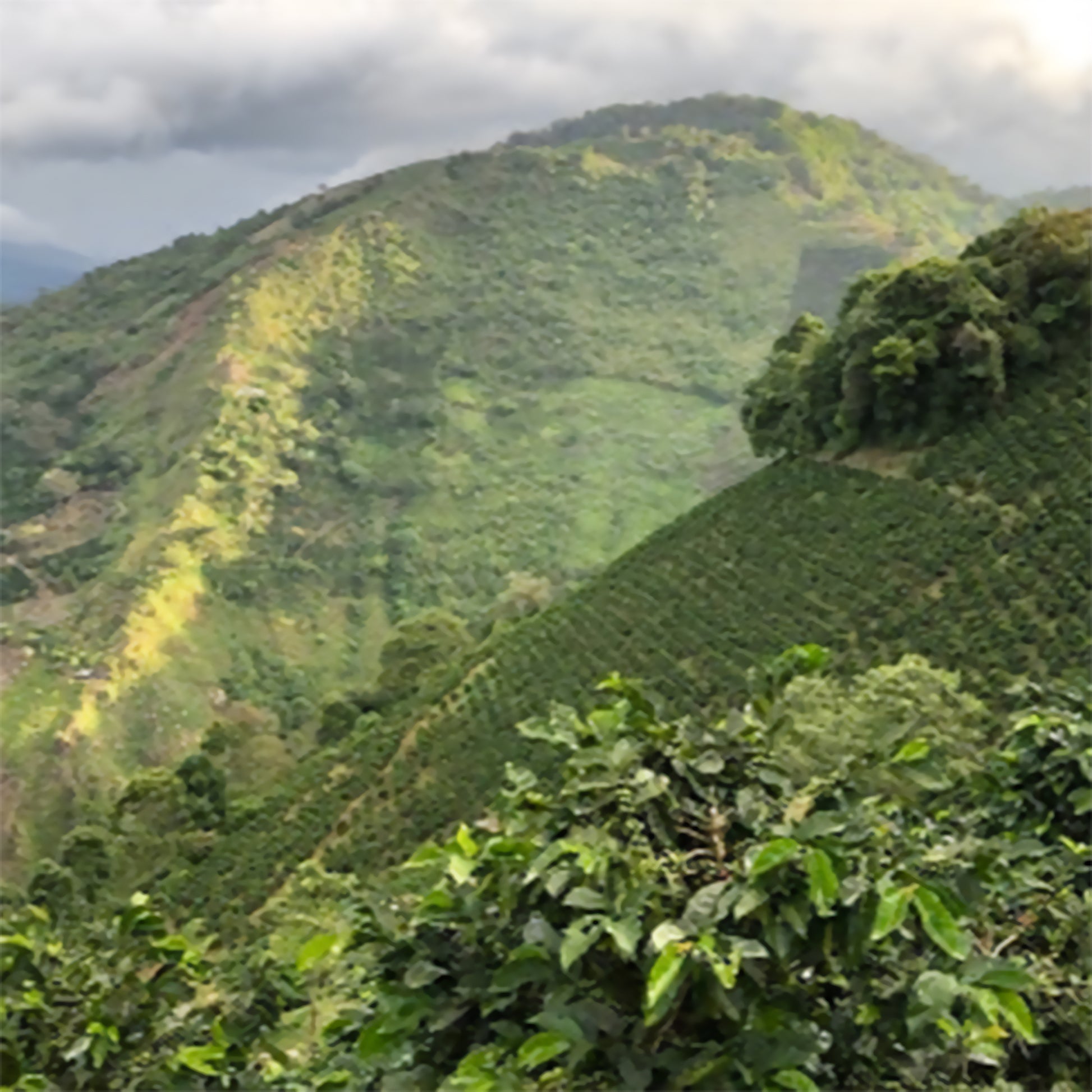 Colombia Bella Vista(ベジャビスタ農園)は、コロンビア南部のウイラ県ティマナ市に位置し、標高約1,730メートルの高地にあります。COE入賞歴のある農園主のデイロ・ガスカ氏は、農園を一から開拓し、現在では約65,000本のコーヒー樹を栽培しています。農園は、グアモやなどの在来樹種の木陰を利用して、コーヒー樹を直射日光から守るシェードグロウンでの栽培を採用しています。